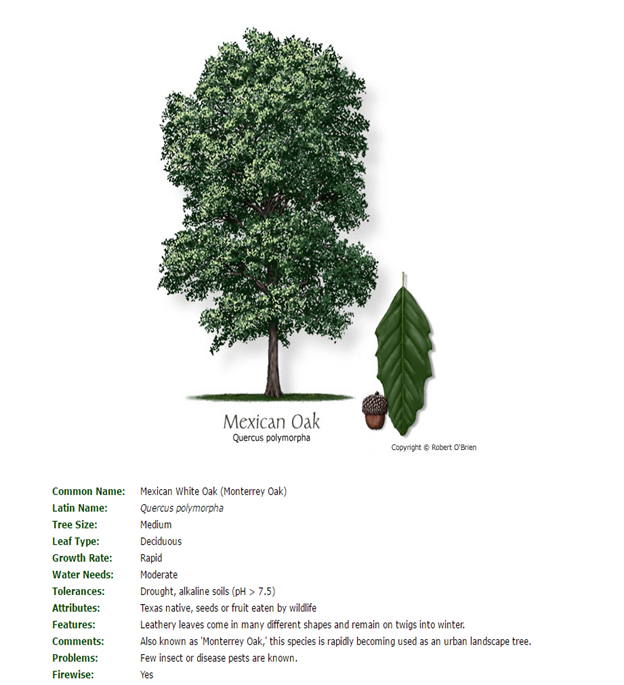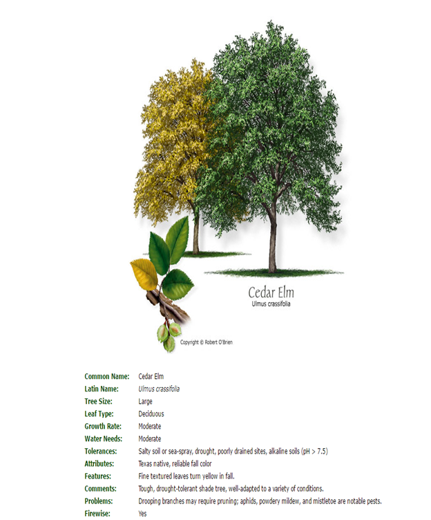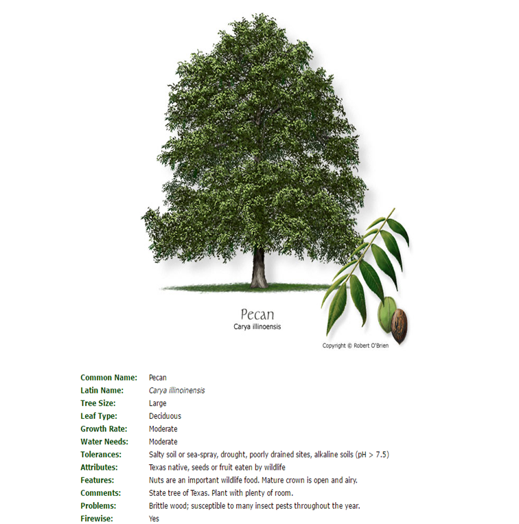 The following tree species are recommended for planting in Texas by the Texas A&M Forest Service Texas Tree Planting Guide, http://texastreeplanting.tamu.edu/ViewAllTrees.aspx.